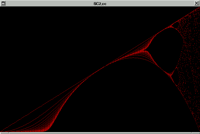 Notice the bifurcation around x=3 before the introduction of chaos.