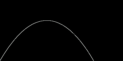 The first step to investigating the problem is to make a simple simulation of the situation1, and try a variety of launching angles and velocities, printing the trajectory to the screen. A sample trial looks like this: